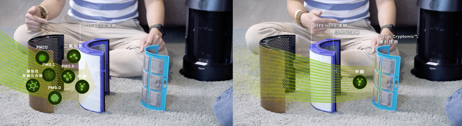 在各式環境下的Dyson Pure Hot+Cool Cryptomic™消滅甲醛空氣清淨機如何過濾空氣